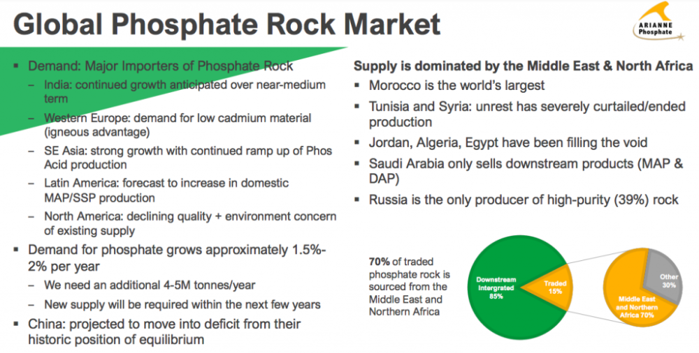The stars are truly aligned for Arianne Phosphate. It’s difficult to imagine a more bullish backdrop for management to secure new off-take agreements and arrange project funding.