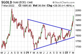 Precious metals are gaining on inflation fears, which are being exacerbated by war. Unprecedented economic sanctions imposed on Russia threaten to cause currency turmoil and global disruptions in supplies of critical commodities.