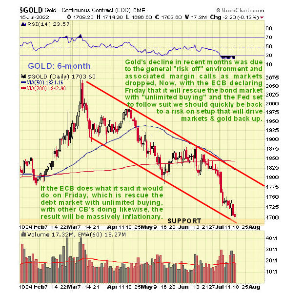 However, the support at the bottom of this range must hold, if it later fails as a result of a general market crash occasioned by a severe credit crisis, then gold would probably plunge along with everything else, however, the risk of this has been reduced for now by imminent renewed Central Bank intervention. If the Central Banks now pump in the direction of hyperinflation then gold should fly off the top of this chart.