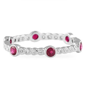 To add colour and contrast, precious gemstones alternate wonderfully with white diamonds. For example, Sapphire Eternity rings. Incorporating both April birthstone and September birthstone. Blue sapphires represent September, available in a wide range of blue, blue-black, light-blue or blue green shades.