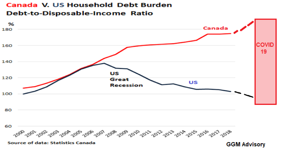 The percentage of household debt to disposable income is today approaching 180%, and that is a meaningless number to most until one sees that at the peak of the U.S. housing bubble in 2007, that number peaked at 140%. The U.S. is certainly no ideal model of sound money practices either, at the household or the federal level, but one can see that the trend in the U.S. is down while Canada (at least as of two years ago) was accelerating. With the insanity of the liberal government reaction to the pandemic and economic collapse, the Canadian numbers are certainly no better today.