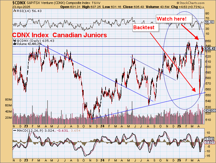 Despite the big sell of in US$ gold today the TSX-V CDNX was UP and new highs less new lows stayed positive.