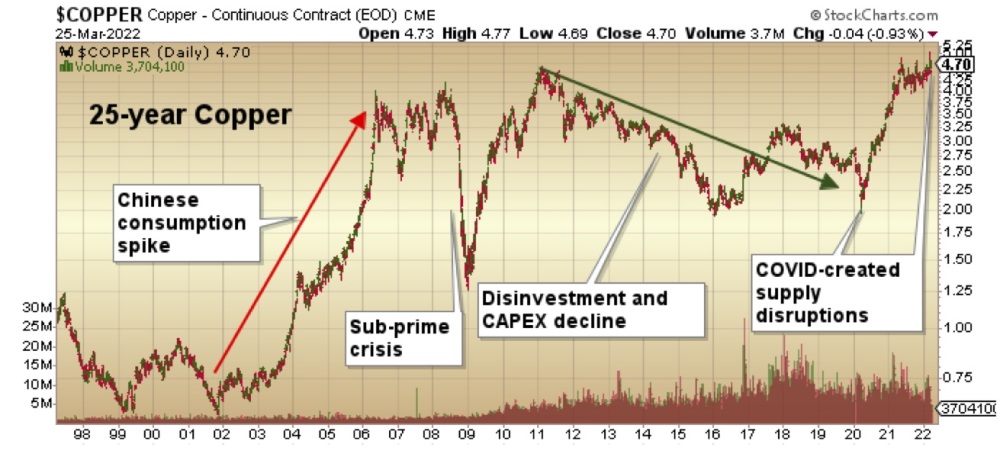 Whereas gold is “the investment of kings” and diamonds are “a girl’s best friend,” copper has lacked the nobility and sex appeal of other commodities, and as such, has been largely ignored by the speculation crowd that instead dove into cannabis and crypto and egregiously overpriced tech stocks and renewables as a means of veering off the beaten track of investment conformity.