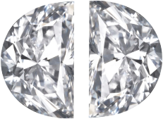 As the name suggests, half-moon side stones look like a round or oval diamond sliced in half, with one straight edge and one curved. Some have a more elongated shape, resembling a halved oval rather than a full circle. While they can be cut in both brilliant and step-cut styles, the brilliant cut is far more common due to its sparkle and compatibility with most center stones. Some half-moons are also slightly tapered to better flow into elongated shapes like ovals or cushions.