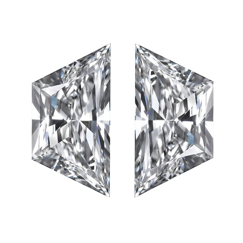 On the flip side, these stones feature long, clean facets that echo the structure of an emerald or Asscher cut. Instead of fiery sparkle, they offer a soft, mirror-like flash and a more architectural look. Step-cut trapezoids are a natural fit alongside center stones with similar faceting, especially emerald cuts, Asschers, and radiant cuts.