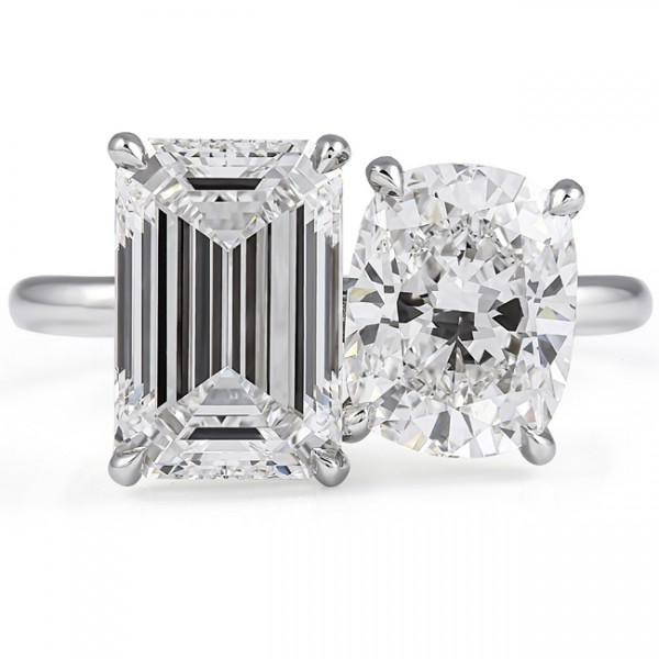 2.77 carat Emerald Cut & 2.02 Cushion Lab Diamond Duo Ring
