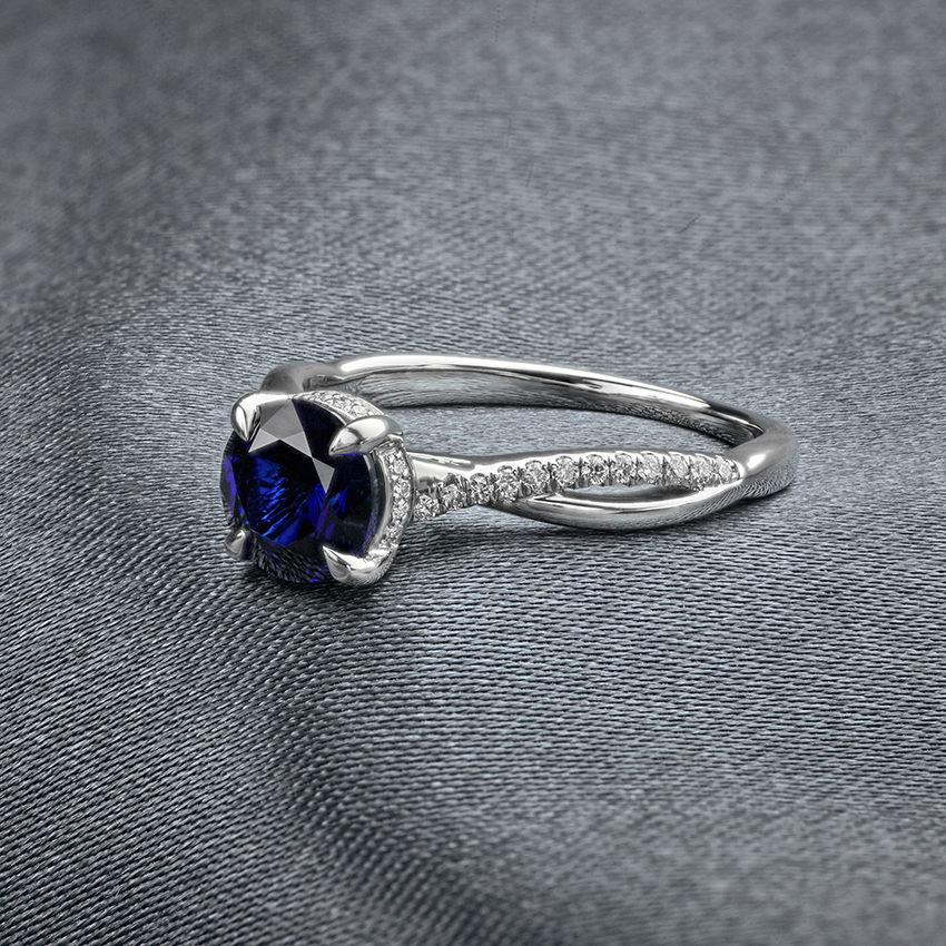 This popular design adds secret sparkle to an engagement ring and offers a subtle alternative to traditional halo ring styles. As a result, this style suits various diamond and gemstone shapes and works well with plain or diamond-set shoulders.