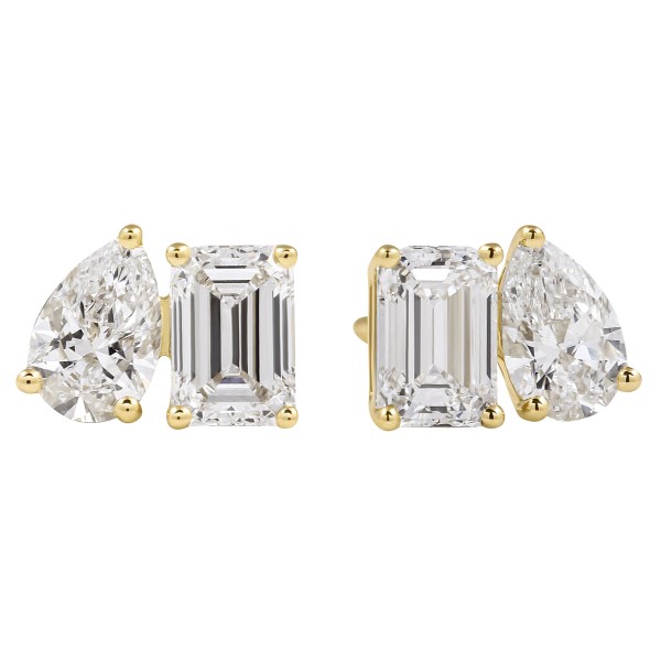 Pear and Emerald Cut Lab Diamond Duo Stud Earrings