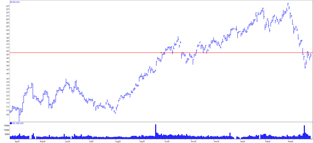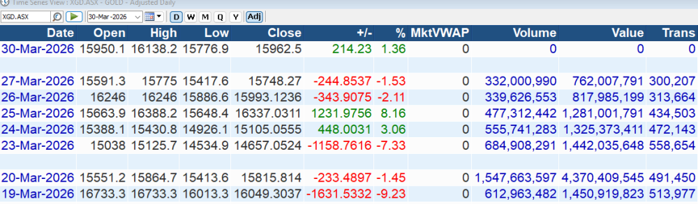 There was a big volume and value on March 20, but less in the low of March 23, and steadily lower each day since.