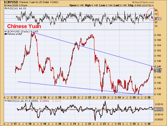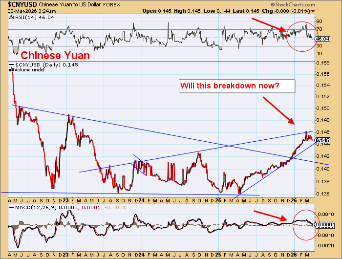 The Chinese Yuan looks vulnerable to a downdraft as well.