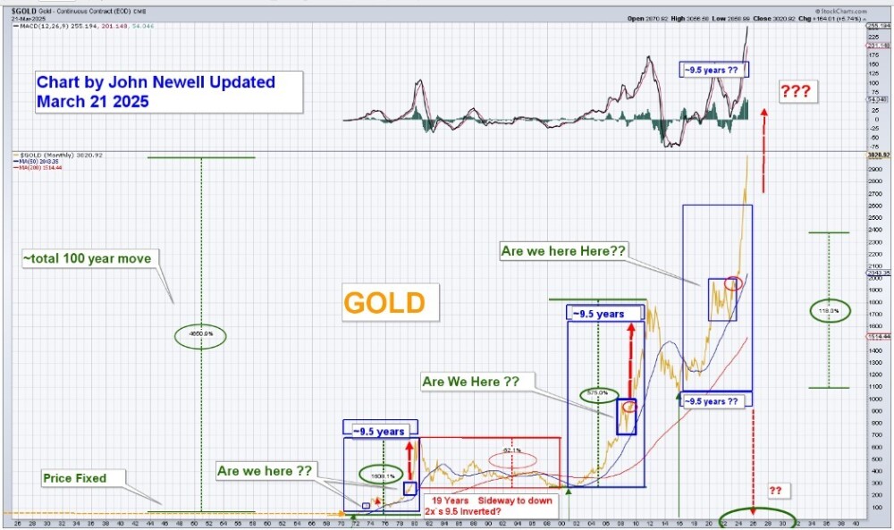 Gold did this in the 1970s and again in the 2000s. A third 8x move from the 2015–2020 consolidation suggests a target near $8,000.