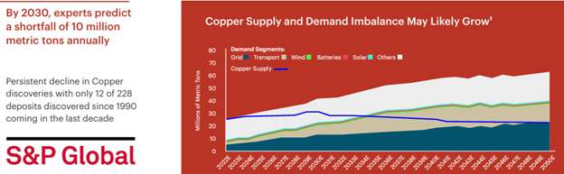 Industry analysts increasingly warn that the world could face a significant copper supply gap later this decade as demand grows faster than new mines can be developed. Some forecasts suggest the market could be short as much as 10 million tonnes of copper annually by 2030 if new deposits are not discovered and brought into production.