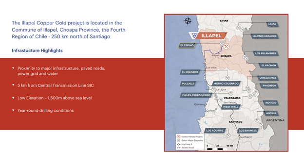 The company’s flagship asset is the Illapel Copper Project, located in the Choapa Province of Chile, approximately 250 kilometers north of Santiago.