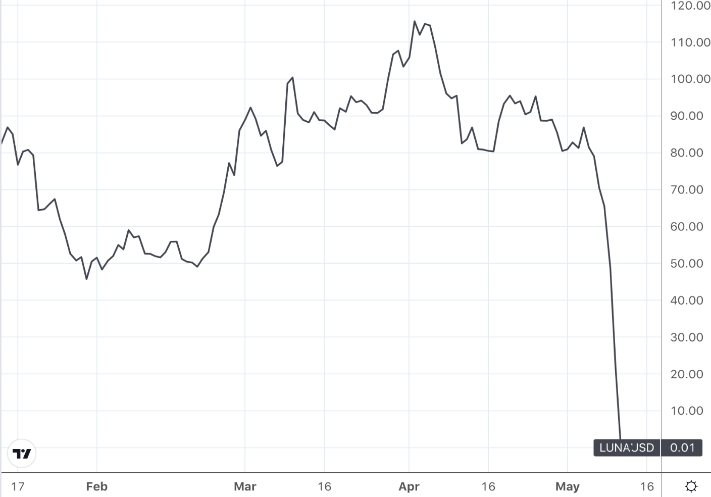 USAGOLD note: It is interesting to note that the Treasury Secretary found it necessary to offer a few words of assurance on the crypto meltdown in testimony before Congress last week. “I wouldn’t characterize it at this scale as a real threat to financial stability,” she said, “but they’re growing very rapidly and they present the same kind of risks that we have known for centuries in connection with bank runs.” In the case of Terra’s crash, there was no time for a run on the bank. It took roughly a week for it to go from $87 a token to zero. The problem with contagion is that once it surfaces, no one can be certain what might be affected next and how widespread the damage can become. The black swan often travels in the dark. The concern with TerraLuna’s collapse, in particular, is how quickly it happened – and without any warning whatsoever.