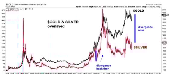 Silver has underperformed gold since 1973, especially since 2011.