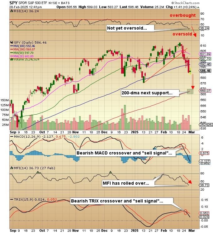 Stocks snapped open this morning with the SPY:US opening at $585.56; trading up to $589.03 then falling back to $583.27 as traders are struggling with the horrific action in the “MAG Seven” group and especially the dreadful action in NVidia Corp. (NVDA:US) and Bitcoin both of which are losing more ground today.
