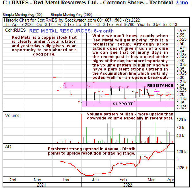 These comments build on an April 8 post when he wrote “with the stock at an attractive price and under accumulation, Red Metal is a speculative buy here and a worthwhile addition to a junior portfolio.”