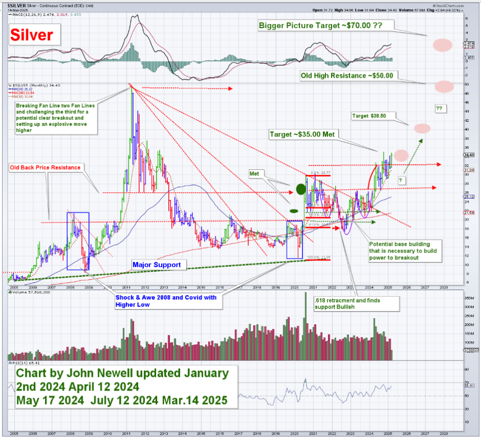 Technical: Silver Hits $35, Is $50 Next? And a March towards $70