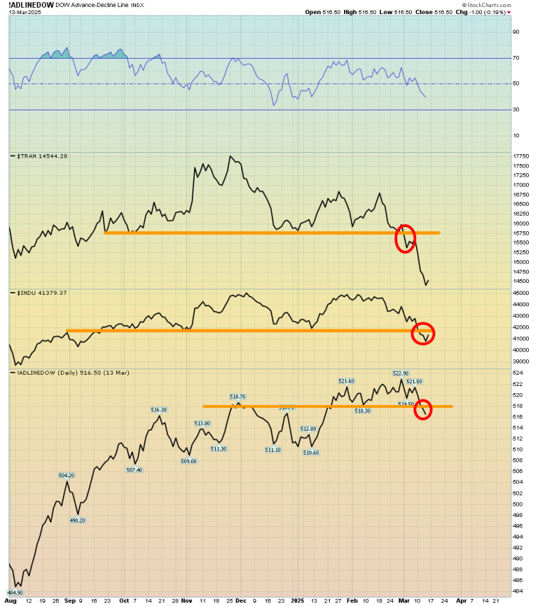 The Dow Industrials, Transports, and the advance/decline line have all now broken down technically.