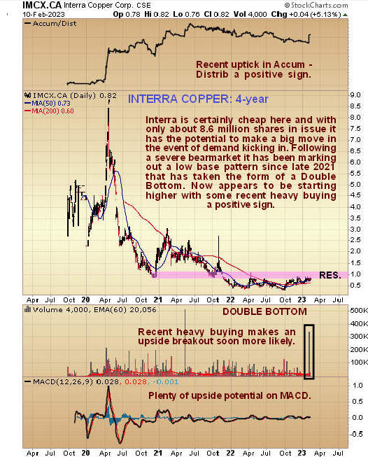 Interra Copper Corp. (IMCX:CSE; IMIMF:OTCQB; 3MX:FRA) is another small speculative copper stock that looks poised to advance soon. It was mentioned in an article on Libero Copper posted on the site on Friday and had a good day Friday.