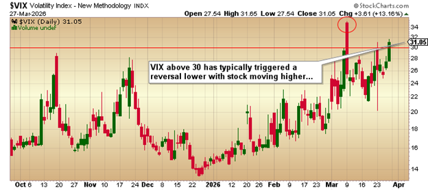 The CBOE Volatility Index (VIX:US) closed at 31.05 which is important because spikes in volatility above 30 have historically been a signal to traders that the declines in stocks have been overdone.