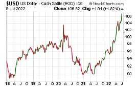 For now, the cyclical upswing in the U.S. Dollar Index is masking underlying dollar weakness. Its purchasing power, the ultimate measure of its “strength,” continues to decline.